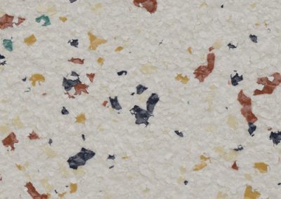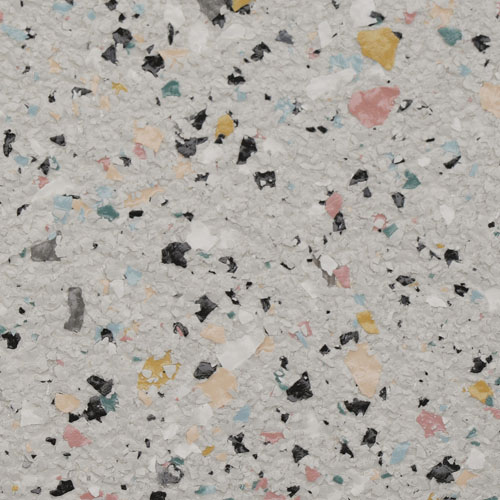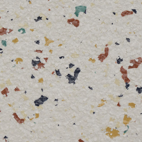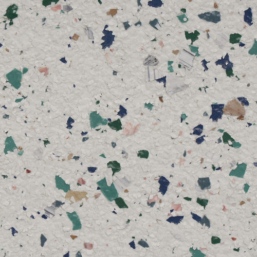 Polymer FLAKE flooring elements enhance the appearance and texture qualities of high-performance flooring systems. This unique product is integrally pigmented, brilliantly colored, randomly shaped, and sized within a standardized range. It can be custom blended to achieve optimal appearance and texture qualities with a resinous floor coating system.